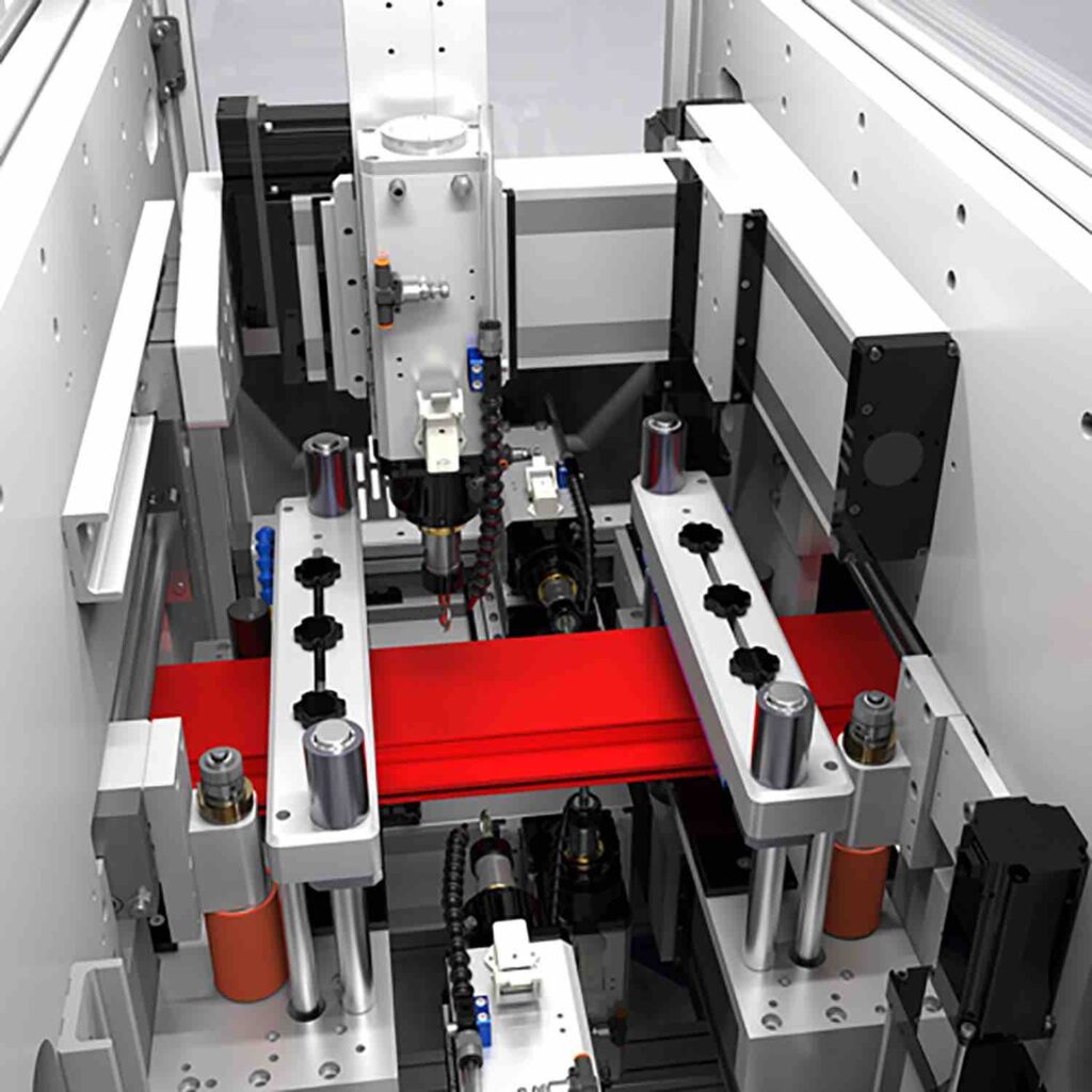 A major cause of inaccuracy in metal machining is deflection. A common problem when machining with high speed drills and routers on aluminium framing, as the material moves through the machine, the cutting axis can bite, bend or wobble. Crucial to avoid deflection, it’s imperative that the machine’s actuators securely hold the drill or withstand the force of the press to prevent misplaced drilling or cutting.