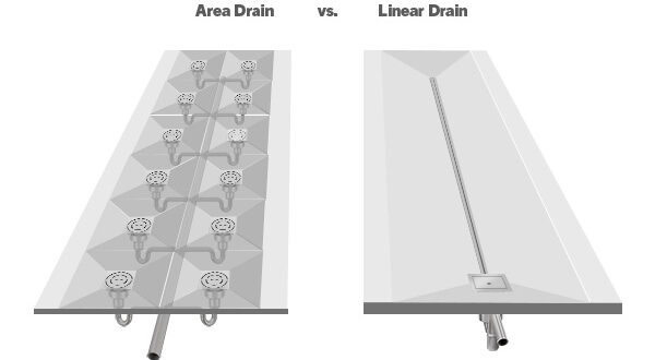 There are two types of linear drains: drains with grates and slot drains.
