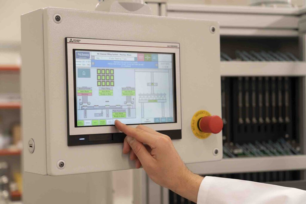 The system also communicates with a GOT 2000 HMI, through which operators can select the correct recipes and the liquid volume that should be dispensed into the wells (this ranges between 0 and 250µL) as well as monitor the process in real-time. If the system stops, the HMI also provides key information to help operators resolve the issue and restart the machine as quickly as possible.