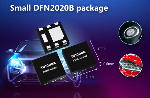 Toshiba announces the launch of five new automotive MOSFET products, designed to offer a combination of space-saving benefits and easy mounting. These N-channel (XSM6K361NWXSM6K519NWXSM6K376NW, and XSM6K336NW) and P-channel (XSM6J372NW) MOSFETs are housed in the DFN2020B(WF) package, which features a wettable flank structure.