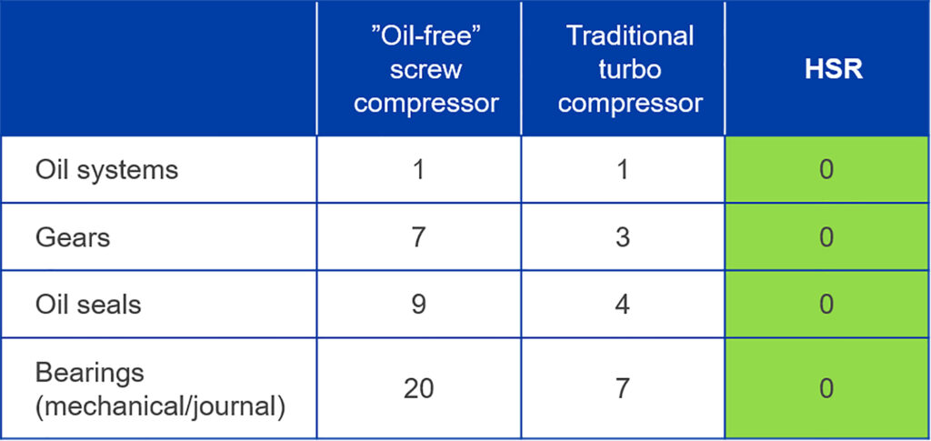 Besides saving money spent on replacement costs, saving the environment, ensuring product safety, boosting production uptime, and fulfilling governmental regulations, the customer will receive smaller energy bills. This is because the HSR turbocompressor is controlled by a variable speed drive to ensure the most energy-efficient air production for varying demands, providing excellent efficiency that does not deteriorate.