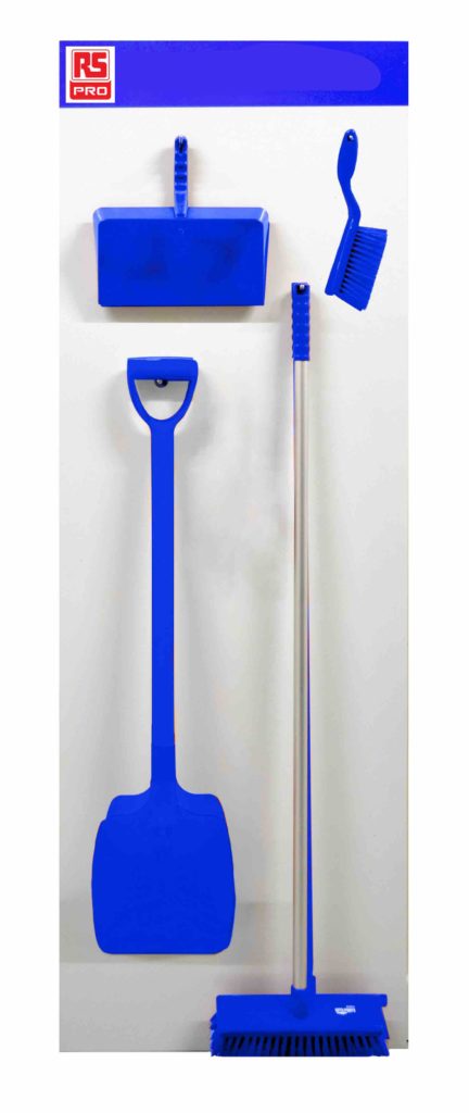 Two varieties of RS PRO Janitorial Kits comprising shadow (equipment storage) boards fully stocked with cleaning equipment, are available in red or blue, enabling a colour-coded system to be implemented to streamline workplace procedures, segregate departments, and identify missing items at a glance. This is vital, particularly in industries such as food and beverage, where the risk of cross-contamination is high and a serious hazard to health.