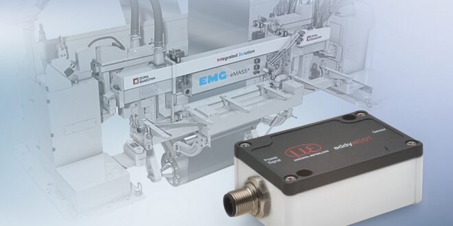During the coating process, the inductive sensors measure the vibrations as distance values on a non-contact basis. These are transmitted to the electromagnetic stabilisation system, which enables continuous monitoring of the entire system, thus ensuring reliable vibration reduction. The EU40 inductive sensors are extremely robust and can easily withstand the high temperatures, as well as the chemical and mechanical loads of the system. They work with a large measuring range of 40mm and are operated using the compact eddyNCDT 3020 industrial controller in a version (DT3029/EMG) specially adapted for the EMG application. The controller is also extremely robust and is designed with a high degree of protection (IP67). Due to its compact design and high temperature resistance (up to 105 °C), it can be integrated directly into the EMG stabilisation unit.