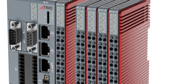Trio’s Motion-PLC range combines MCS series motion controllers and MS series I/O slice modules. The MCS-30 offers up to 4 motion axes with simple control for point-to-point positioning whilst the MCS 40, along with the higher-performance MCS 50, are ‘Flexible Machine Controllers’ that will address more complex axis-and machine-synchronised tasks. With the capability for rapid machine development, all MCS series servo controllers feature a slice interface that facilitates seamless integration of Trio’s MS I/O system which supports up to 16 variously configured slice modules of 16 digital inputs or outputs, or blocks of 4 analogue inputs or outputs. Trio’s MS I/O slice modules can also connect to an EtherCAT coupler for flexible integration. The DIN-rail front mounted system features spring clamp connectors with push-button removal that make wiring fast, facilitating quick and flexible machine set-up.