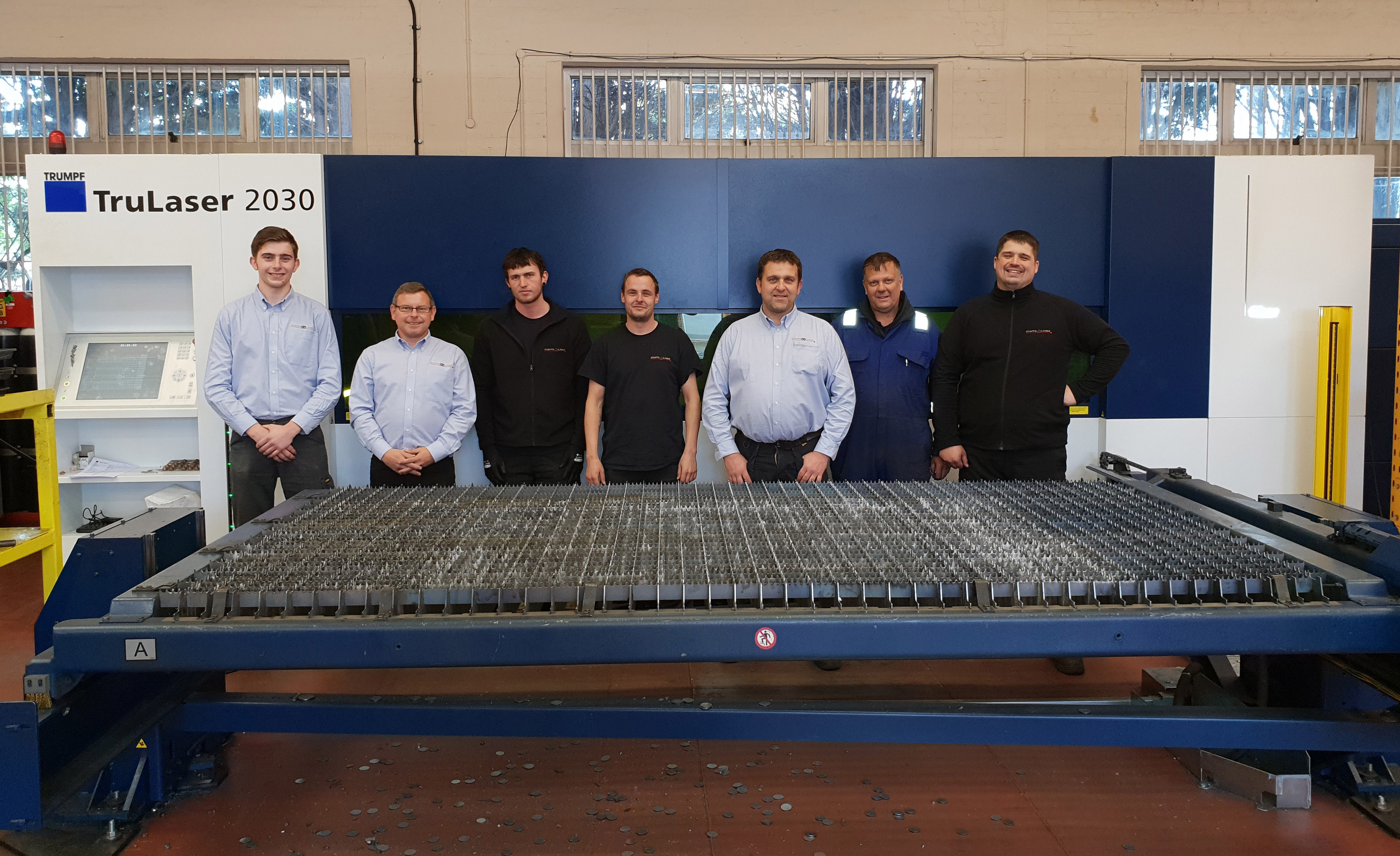 Staffs Laser Ltd: Eddie Hopkins, third from the right, says: “At my previous employment we had CO2 laser cutting machines, which are fine but cannot match the speed of fibre on thinner sheet.”