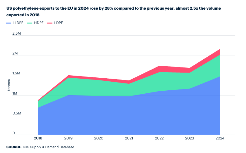 US PE exports to Europe have already rocketed as the country ramped up its ethane-based capacities.