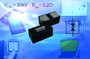 Toshiba Electronics Europe has introduced a new bi-directional electrostatic discharge (ESD) protection diode DF2B7ASL which …