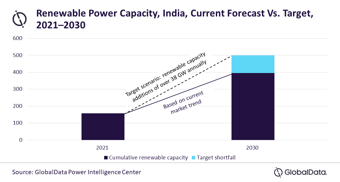 India announced new renewable energy goals last year to increase non-fossil power capacity to 500GW and meet 50% of the country’s electricity needs through renewables by 2030. However, after including large hydro under the definition of renewables, the country is likely to achieve its 2022 target but may miss out on the solar-specific target, and subsequently fall short of the 2030 target, says GlobalData, the data and analytics company.