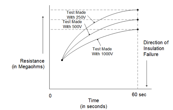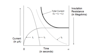 If the insulation is good, the resistance measurement will increase over time. The larger leakage current experienced by contaminated insulation, however, will slow down this increase and give the operator an indication of insulation deterioration levels.