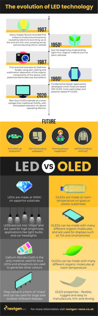 NextGen Nano’s infographic demonstrates how industry is beginning to recognise the true potential of OLEDs, to reduce energy consumption and improve the quality of displays — in everything from TVs and mobile devices to cars and aircrafts.