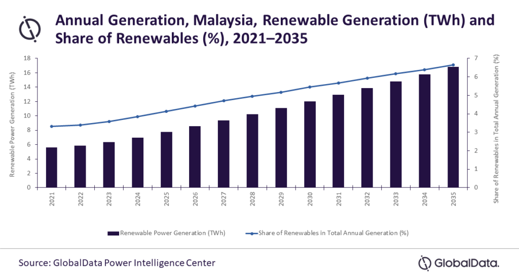 GlobalData’s latest report, Malaysia Power Market Size, Trends, Regulations, Competitive Landscape and Forecast, 2022-2035, reveals that solar PV, biopower, and small hydro are the only three renewable sources utilized by the country. In 2015, Malaysia took a step towards exploring geothermal power by launching the 30MW Tawau project, which was later abandoned as there were no obvious signs of activity detected. Also, the country has only one small onshore wind plant with a capacity of 0.2MW. The growth of wind power projects has been hindered by low wind speeds during off seasons, however, several small wind projects could still make a difference.
