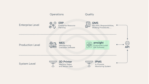 Overview of typical software-stack for AM production, including amsight as production-level QM software