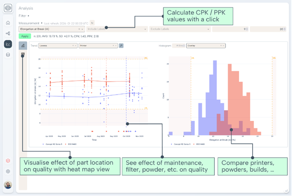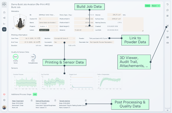 In AM, SPC becomes powerful when the data is not trapped in silos. When powder lots, builds, machine events, post-processing steps and inspection results are connected at part level, SPC stops being a quarterly analytics exercise and becomes a daily operating rhythm.