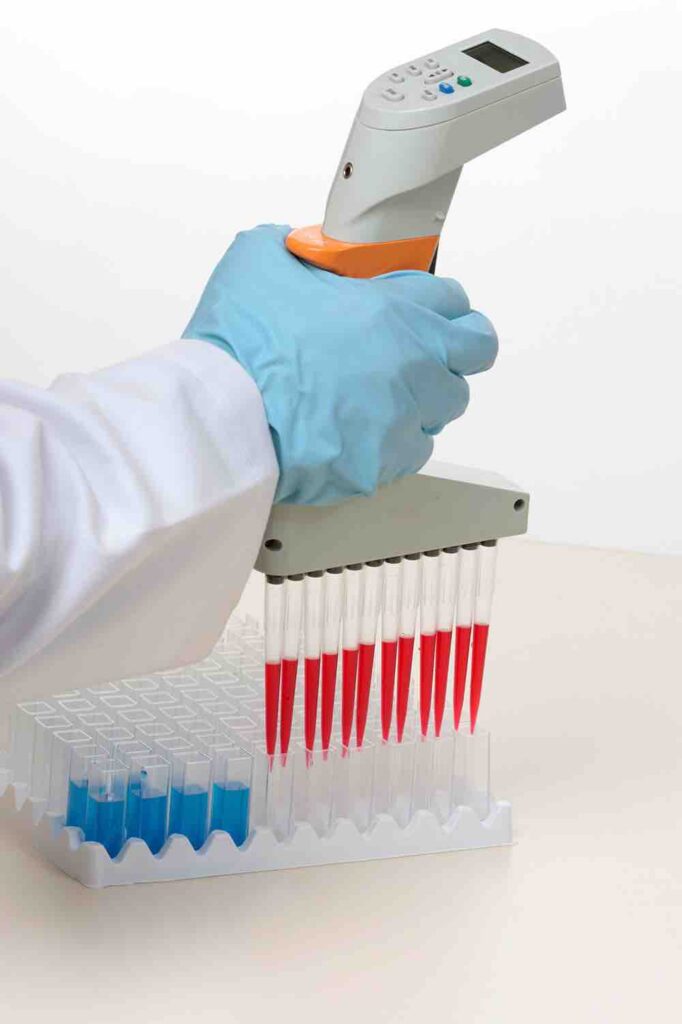 Prior to analysing a liquid sample within a laboratory setting, the technician will complete a series of steps and tests. Using a pipette, the sample is transferred between receptacles of various reagents. Pipettes typically consist of a system of cams, pistons, and cylinders. When the piston is moved, a partial vacuum is created, and the liquid is drawn into the pipette tip.