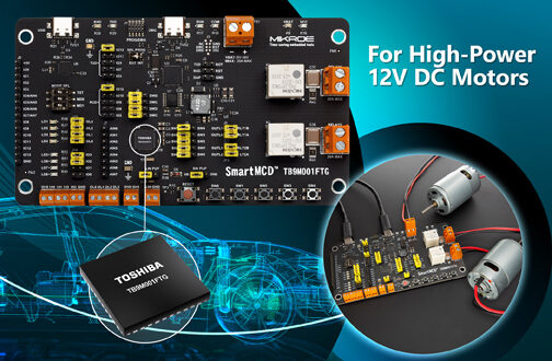 Toshiba has partnered with MIKROE to integrate its SmartMCD for dual brushed DC motors into the SmartMCD TB9M001FTG board. The board enables automotive system engineers to design the TB9M001FTG smart motor control driver for automotive applications, including electric sunroofs, wipers, powered windows, and adjustable seats, to streamline the prototyping phase.