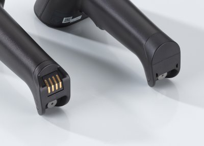 With supercap, battery-free charging technology the devices are lighter easier to handle and the reading processes has been optimized meaning devices now scan up to 20% faster and the contrast tolerance for faint codes is 15% higher. Scanning is also made easier by the integrated green LED aimer with target point and the wide-area white light illumination. Supercaps can be used for tens of thousands of charging cycles. Supercaps (supercapacitors) offer extremely short charging times and are around three to four times more durable than non-rechargeable batteries and rechargeable lithium-ion batteries.