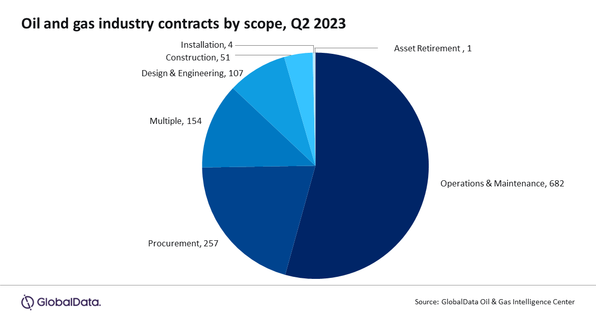 GlobalData’s latest report, Oil and Gas Industry Contracts Analytics by Sector (Upstream, Midstream and Downstream), Region, Planned and Awarded Contracts and Top Contractors, Q1 2023, shows that the overall contract value increased from $35.4 billion in Q1 2023 to $56.7 billion in Q2 2023. However, the contract volume was unable to keep up the pace and saw a decrease from 1,625 in Q1 2023 to 1,256 in Q2 2023.