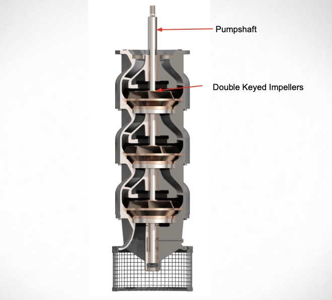 Mechanical attachment methods matter as well. In cavitation-prone environments, impeller security becomes critical. Keyed impeller designs provide a positive mechanical connection between shaft and impeller, reducing reliance on friction alone and helping maintain alignment under transient operating conditions. Unlike collet-style (tapered-sleeve) mounts that rely primarily on friction and can lose grip when mixed materials expand at different rates, keyed designs maintain torque transmission even under cavitation loads and rapid temperature changes.